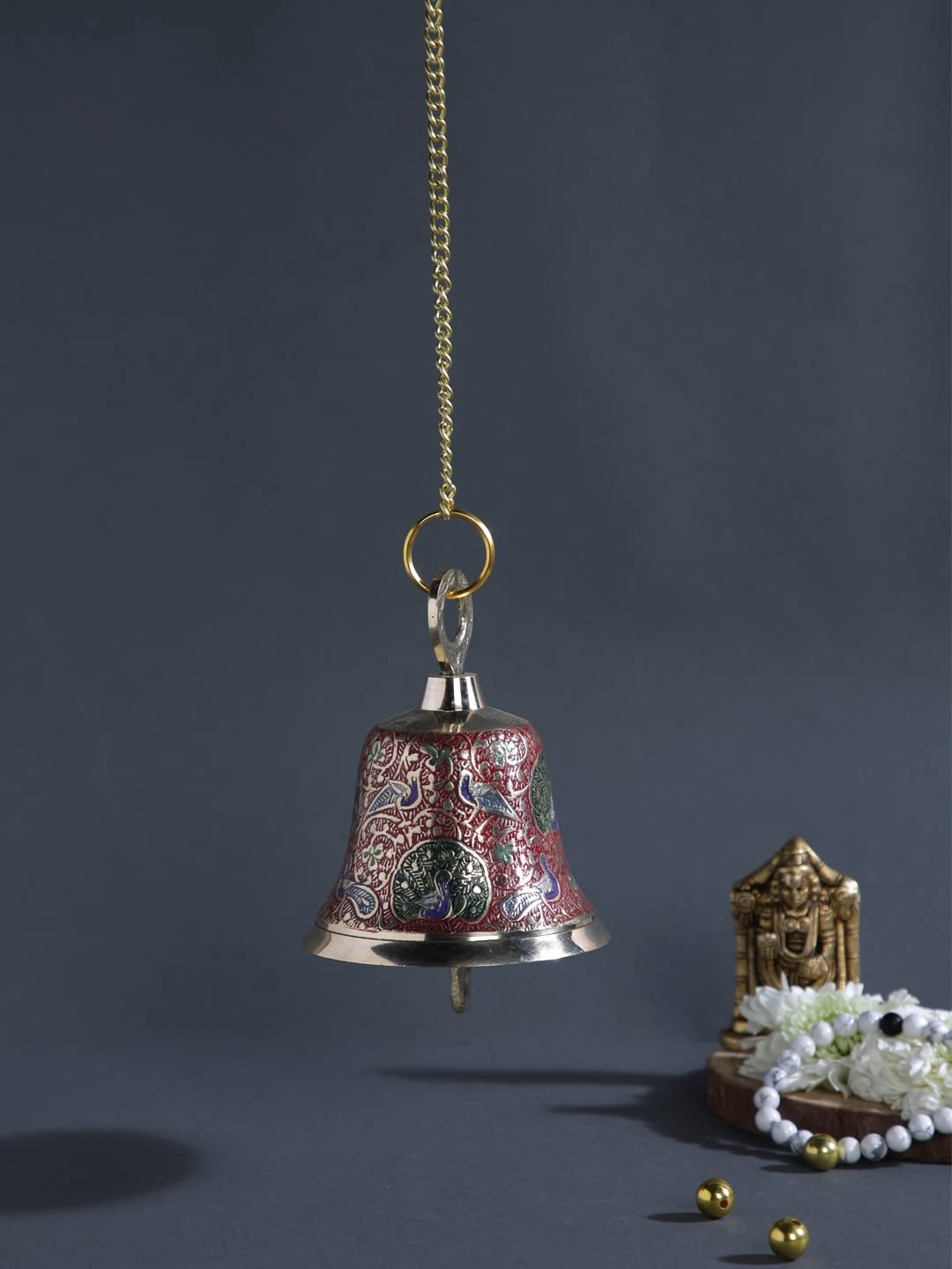 The bell is rung at the beginning of a ritual to awaken the deity and alert the devotee’s mind. Its sound is said to drive away negative energies and invite auspicious vibrations.